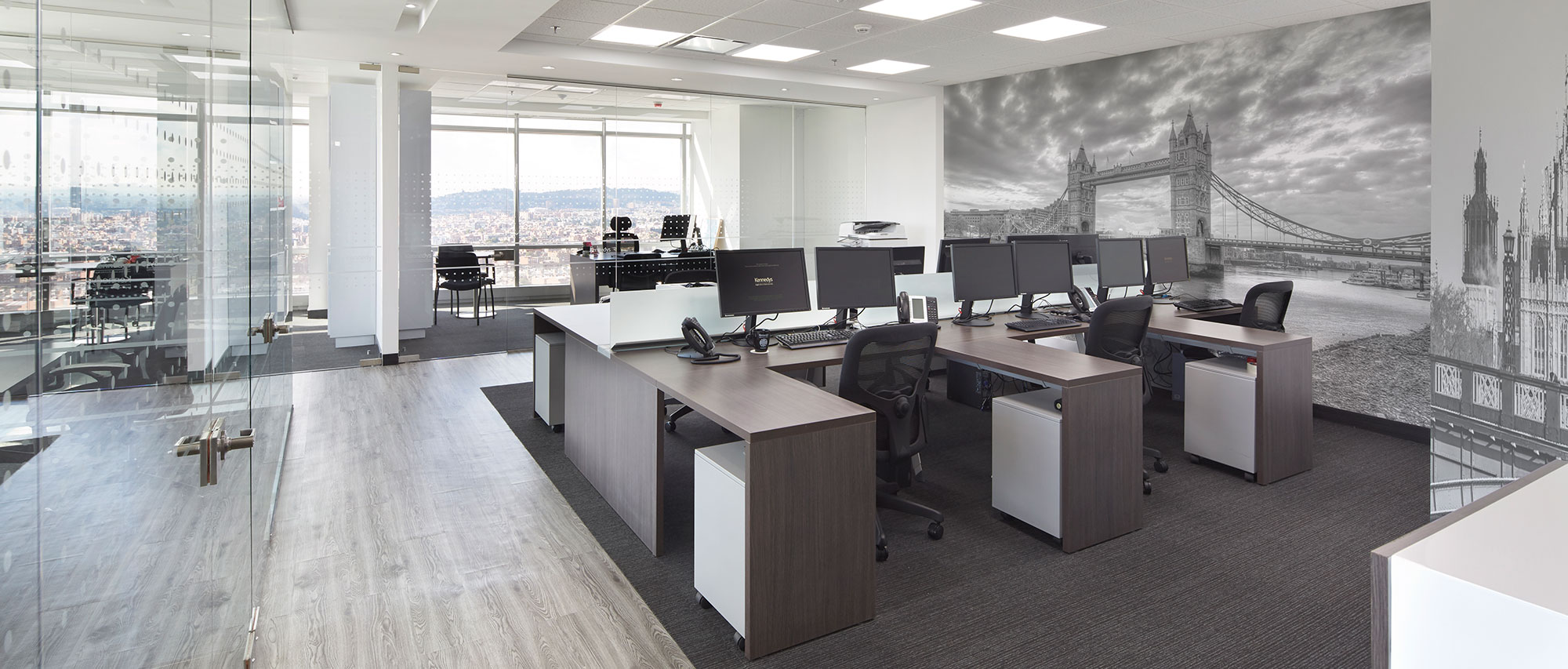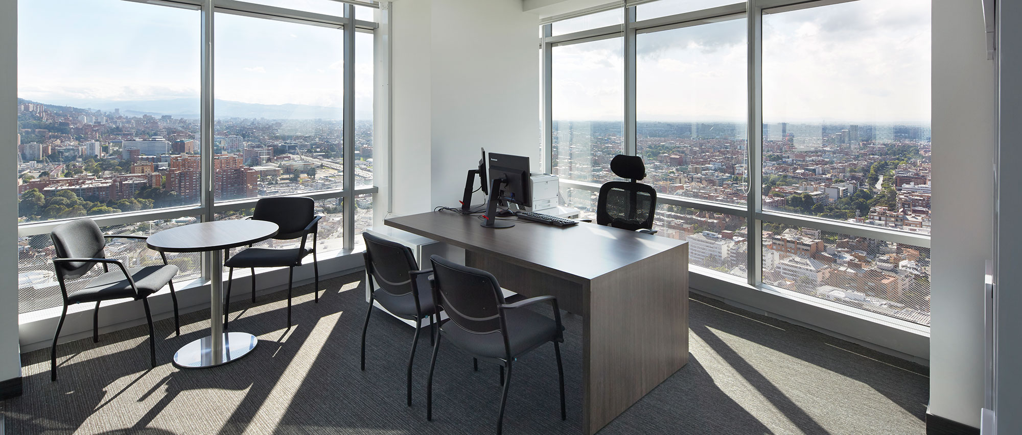 La intervención de la oficina Kennedys law se realiza con base a unos principios y requerimientos por parte del cliente aprovechando su localización estratégica en el piso 28 la cual tiene fachada sur-occidental dándole una vista privilegiada a la ciudad.