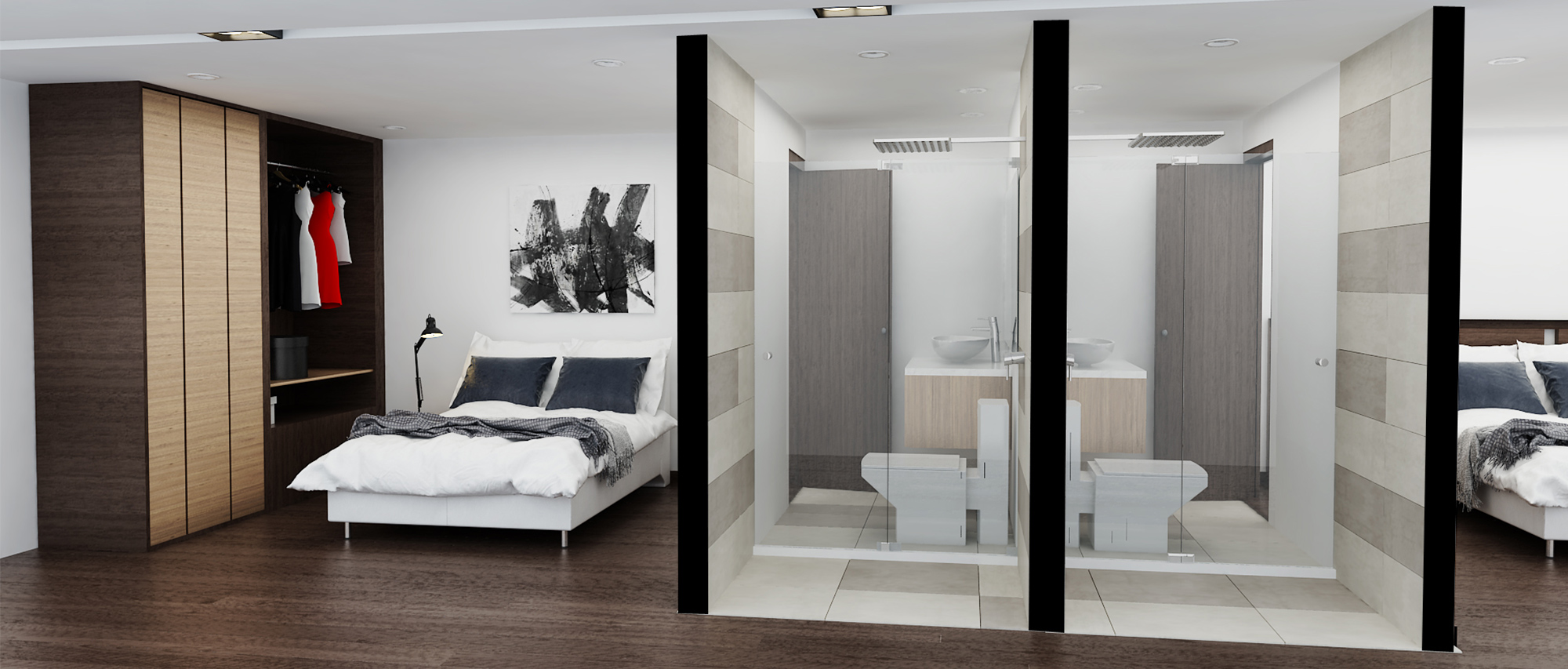 escritorio, cortinas para el control solar y lo más importante era lograr el objetivo de 3 habitaciones